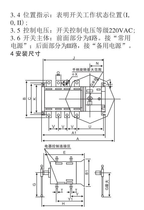 概述控制装置:内置控制器产品结构:体积小、电流大、结构简单、ATS一体化特点:切换速度快、故障率低、维修方便、性能可靠转换方式:电网对电网、电网对发电机、自投自复ATS级别:PC级